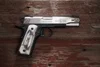 Featuring a stainless steel engraved design, the 1911-380 Black Label Medallion, Stainless Steel Engraved goes beyond accuracy, functionality, and easy carry. The 1911-380's striking appearance is derived from its composite frame with a machined aluminum subframe. Neo-classical American engravings, polished flats, and matte curves further enhance its elegant aesthetic. The white imitation pearl grips feature matching engraving patterns and a Buckmark inlay, adding an extra touch of refinement.