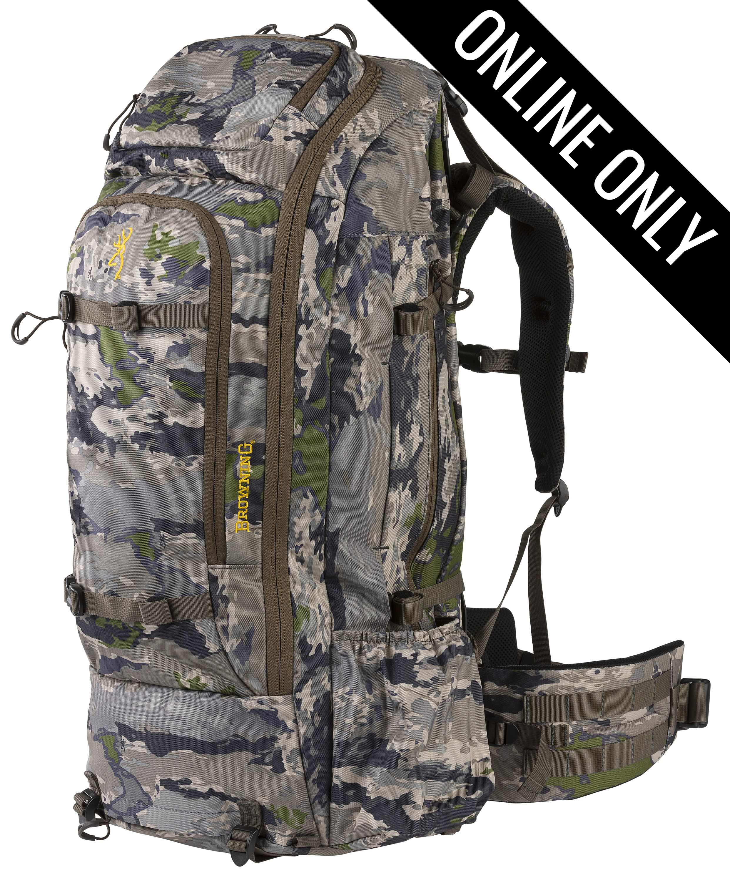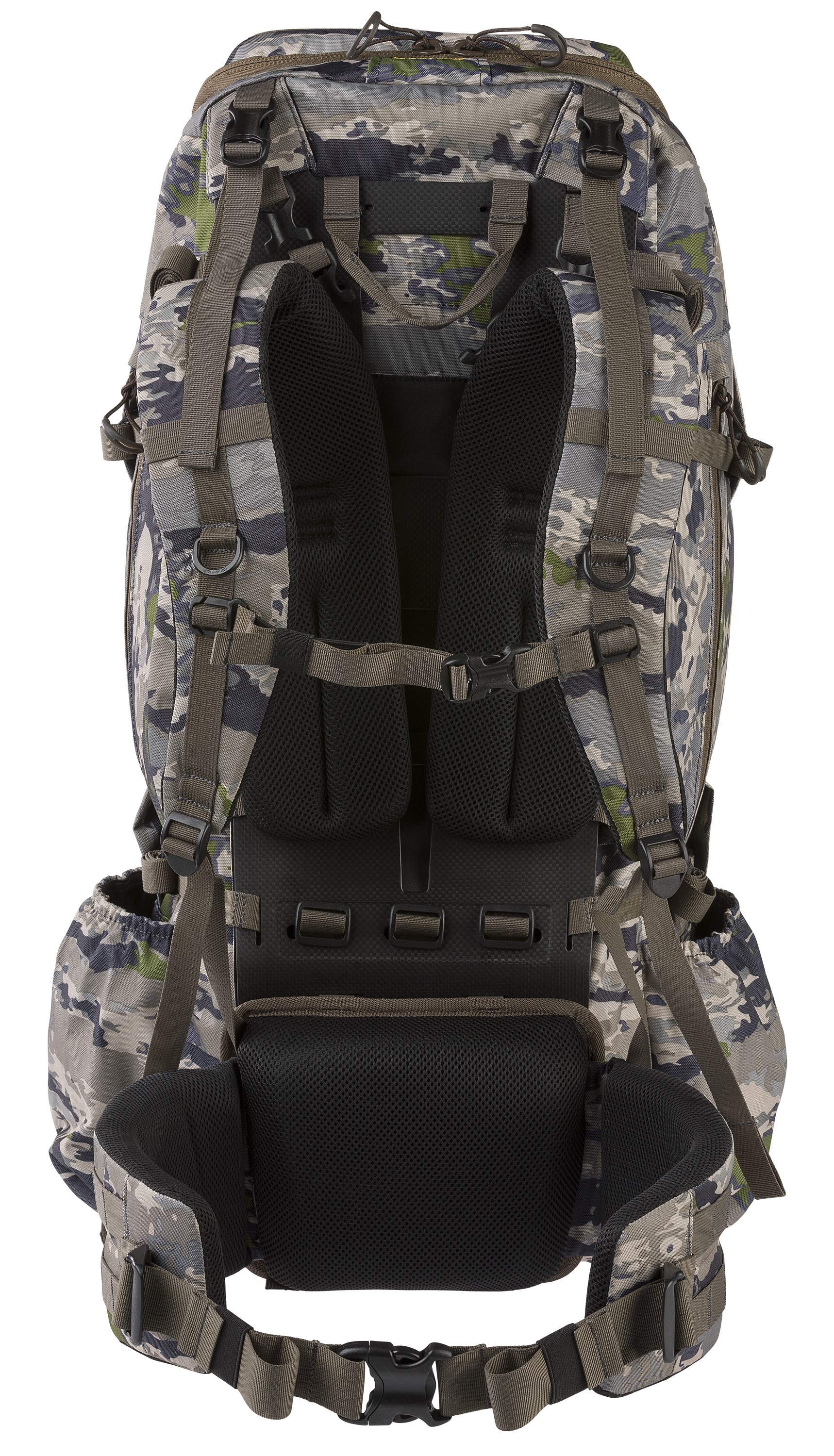 An adaptable external frame pack for shorter excursions. 3,600 cu. in. capacity swallows your gear in with additional room to pack out meat. Features a lightweight carbon fiber frame and fully adjustable harness and waist belt system