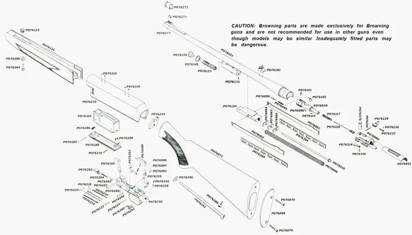 CAUTION: Browning parts are made exclusively for Browning guns and are not recommended for use in other guns even though models may bo similar Inadequately fitted parts may be dangerous.