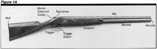 In conventional gun terminology the position and movement of gun parts are described as they occur with the gun horizontal and in normal firing position; i.e., the muzzle is forward or in front; the buttstock is rearward or to the rear; the trigger is downward or underneath; the sights are upward or on top. For more detailed terminology, see Figures 1A and 1B. Note: While this manual primarily discusses Super­posed B-25 and B-125 shotguns, assembly, disas­sembly, and general operational instructions also apply to Browning Express Rifles.