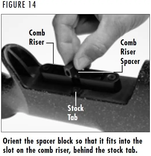 11. Install the comb onto the stock with the numbers on the comb to the rear of the rifle. Place the comb into the lowest position.